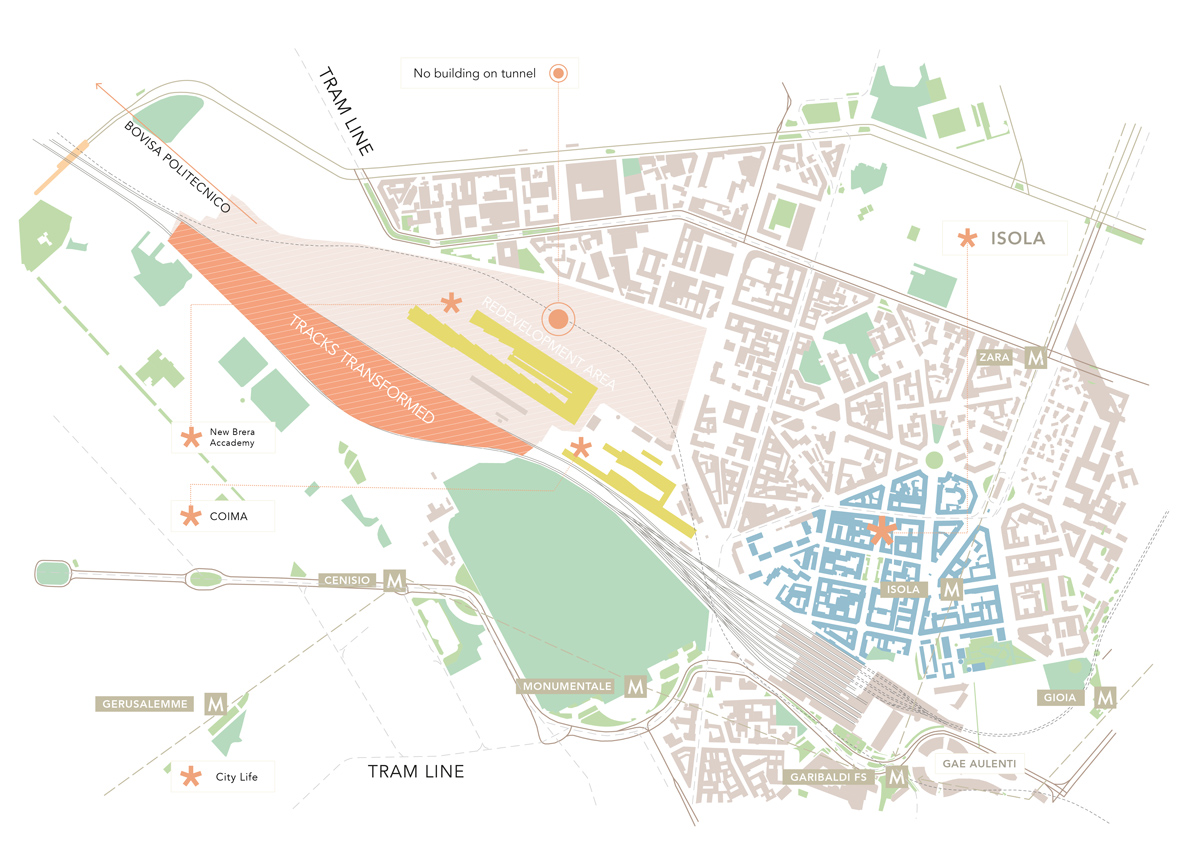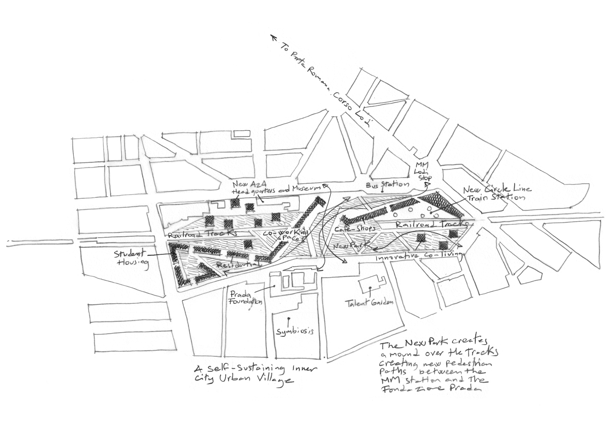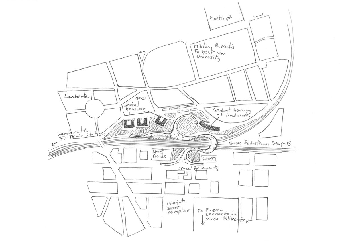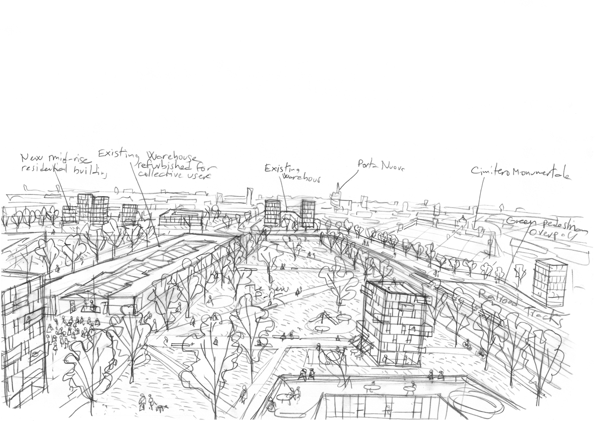 To reimagine the centre of Milan as a connected urban campus through the regeneration of three abandoned rail yards owned by FS Sistemi Urbani. These sites are the last resort to accommodate the city’s projected rapid growth in the next decade, facilitate its leading university campuses to find their way back into the top 100 global education rankings, while at the same time reuniting disconnected neighbourhoods and enabling economic growth in a more inclusive way.