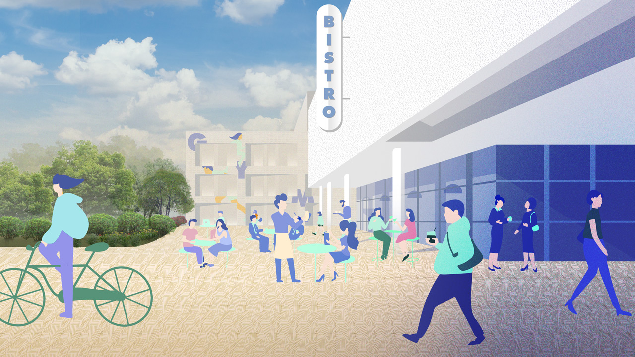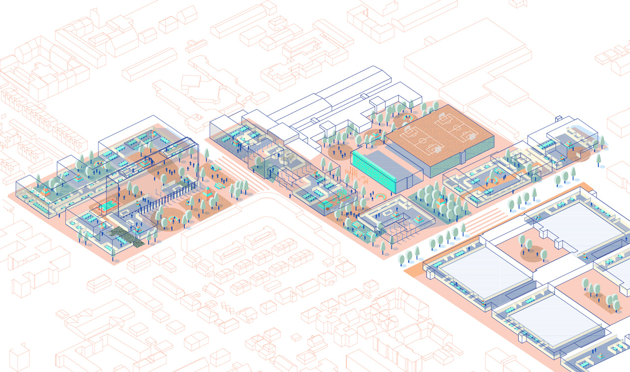 The second half of the challenge was to develop a campus-wide masterplan focused on reconnecting introvert building typologies in Erlangen and creating a landscape between the buildings that fosters a sense of belonging and community by providing a public space for meaningful interaction.